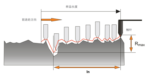 通過測(cè)針的自動(dòng)滑行將粗糙度曲線描繪下來并進(jìn)行計(jì)算既可獲得這條粗糙度曲線的算術(shù)平均值(Ra)也可同時(shí)獲得深度值(Rmax)